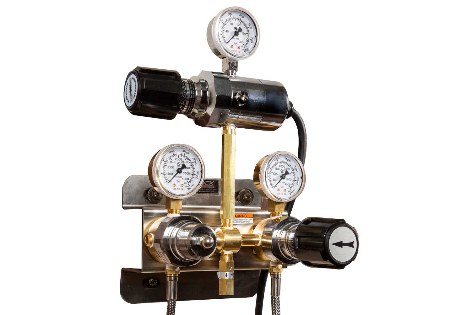 The standard unit includes two 36” cryogenic stainless steel lines with checked CGA-320 fittings. We can also modify the switchover to include additional heaters or accommodate more gas cylinders, depending on your needs.